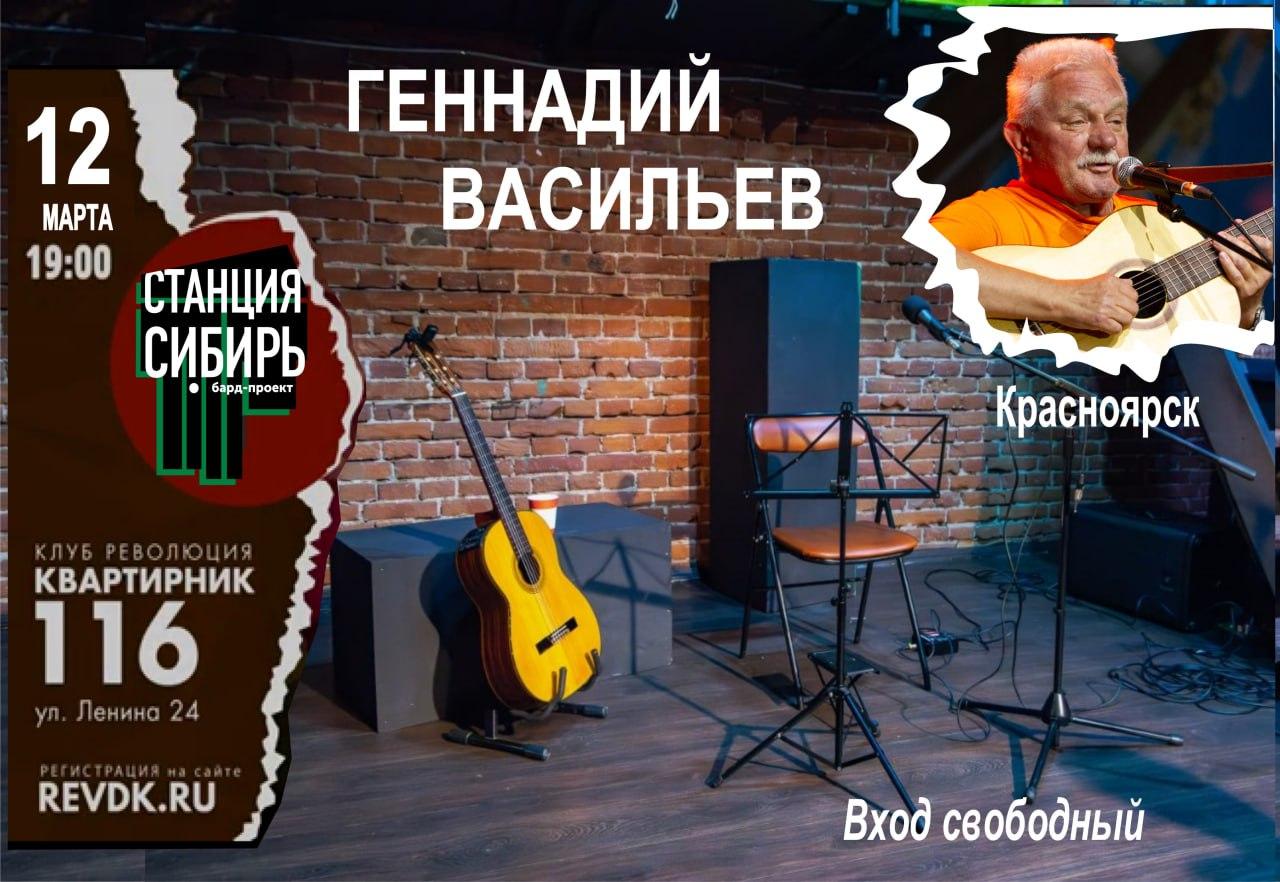 Бард-проект «Станция Сибирь» представляет Геннадий Васильев (Красноярск) Бард-проект «Станция Сибирь» создан для сохранения и развития жанра песенной поэзии, продвижения сибиряков в мировом бардовском сообществе и реализуется командой добровольцев-новосибирцев. Штаб-квартира - в Новосибирске, география - от Урала до Тихого океана. Проект укрепляет творческие и дружеские связи бардовского сообщества, имеющего многомиллионную устойчивую неформальную горизонтальную структуру клубного типа, […]